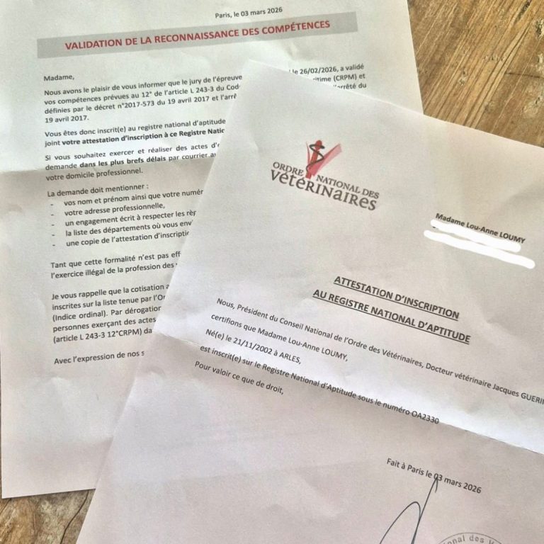 Après 5 années d'études à l'école d'ostéopathie animale de Provence - ANIMOSTEO, un diplôme obtenu en 2025 et la validation de l'examen d'aptitude du Conseil National de l'Ordre des Vétérinaires en 2026 ; je suis inscrite au Registre National d'Aptitude sous le numéro OA 2330
